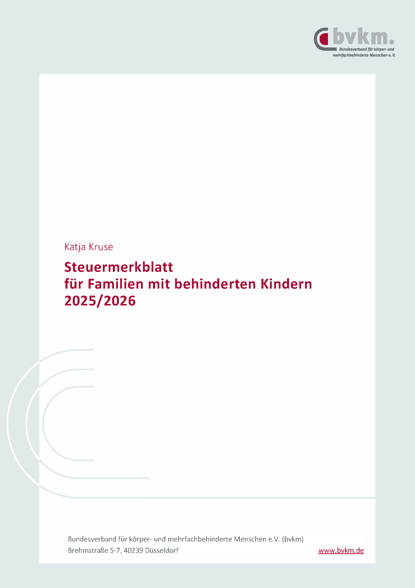 Der jährlich aktualisierte Ratgeber gibt Steuertipps für Familien mit behinderten Kindern und folgt Punkt für Punkt dem Aufbau der Formulare für die Steuererklärung 2025. Berücksichtigt sind die Erhöhung des Kinderfreibetrages sowie des Grundfreibetrags. Auf die Erhöhung der Pendlerpauschale zum 1. Januar 2026 geht der Ratgeber ebenfalls ein.